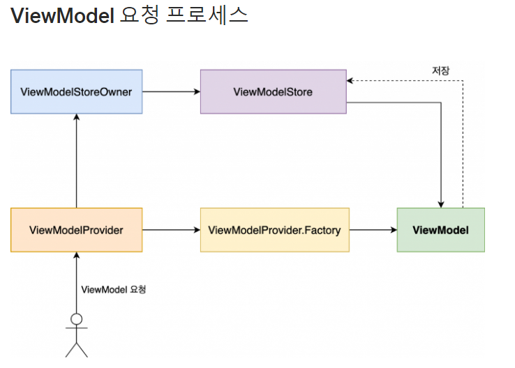 ViewModel 요청 프로세스 출처 : charlezz.medium.com/viewmodel%EC%9D%B4%EB%9E%80-%EB%AC%B4%EC%97%87%EC%9D%B8%EA%B0%80-viewmodel-%EC%B4%88%EB%B3%B4%EB%A5%BC-%EC%9C%84%ED%95%9C-%EA%B0%80%EC%9D%B4%EB%93%9C-e1be5dc1ac18